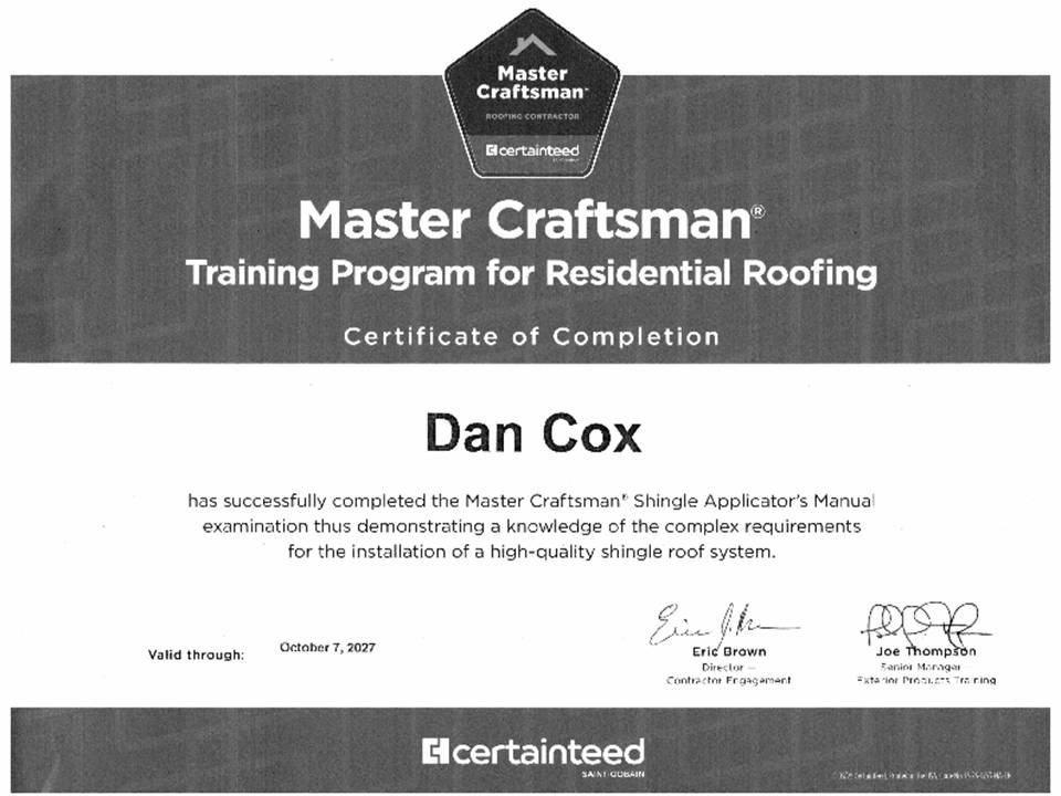 SHINGLE MASTER Certificate (exp 1-31-26)